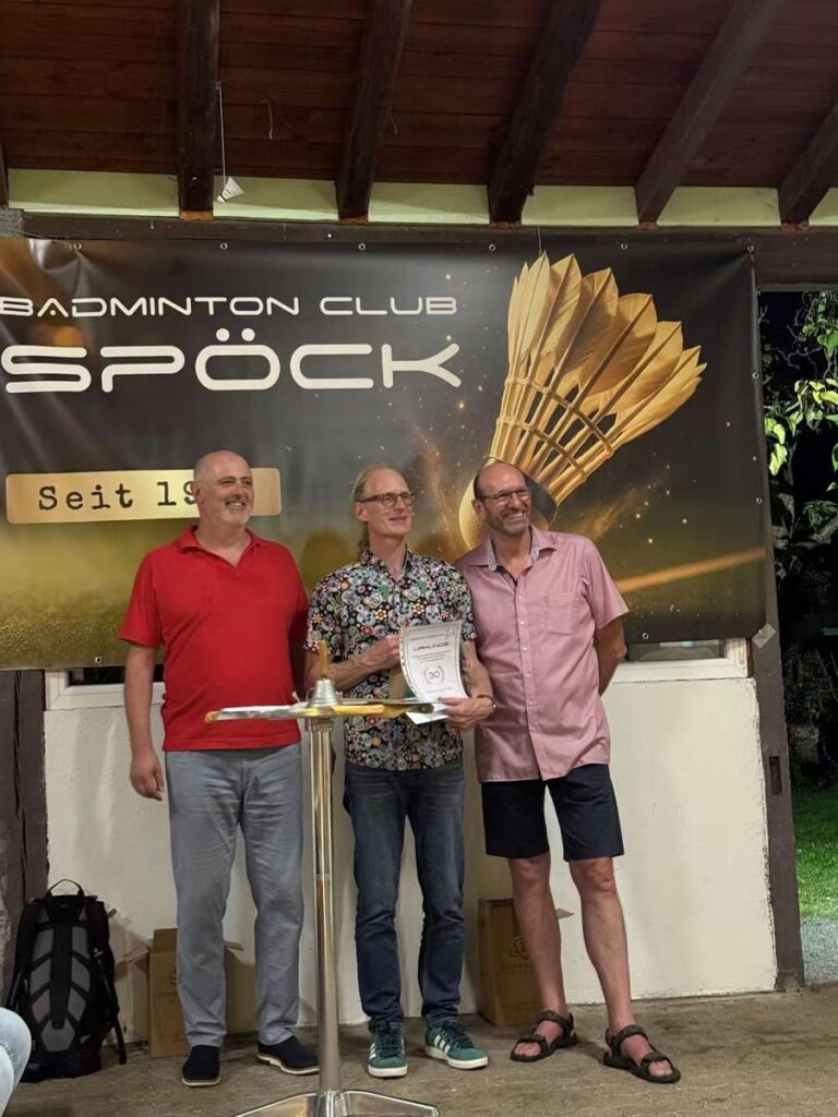 Anfang November 1995 gegründet, stand bereits vor fünf Jahren das erste große Vereinsjubiläum an. Leider fiel die Feier, wie so Einiges im Jahr 2020, der Coronapandemie zum Opfer. Dafür wurde dann dieses Jahr zum dreißigsten Jubiläum kräftig gefeiert. Ungefähr 60 aktuelle und ehemalige Mitglieder waren, zum Teil mit Anhang erschienen, um gemeinsam einen schönen Abend zu verbringen. Der Vorsitzende des Bezirks Nordbaden, Karl-Heinz Hohenadel überbrachte die Glückwünsche des Baden-Württembergischen Badmintonverbandes. Auch von anderen Vereinen waren Gäste der Einladung nach Spöck gefolgt.